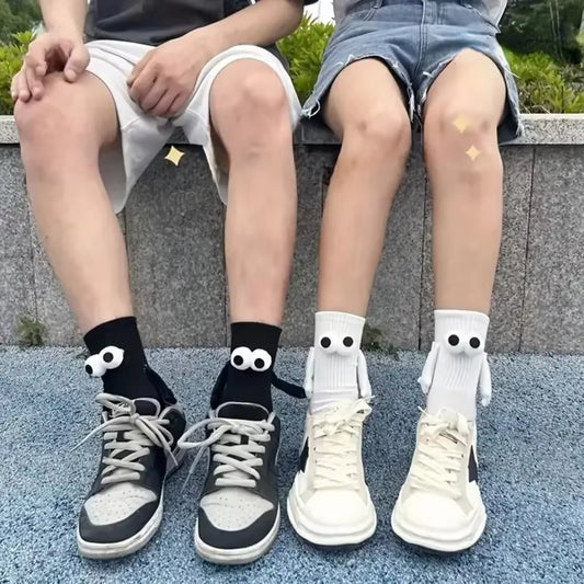 Magnetic Eyes & Hands Mid-Tube Couple Socks — Cotton Blend